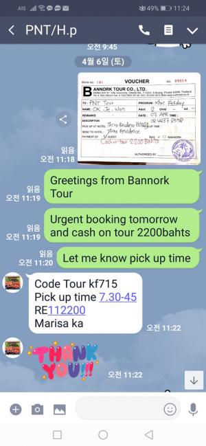 피어에 도착해서 담당 가이드에게 인계되어, 픽업을 한시간동안 기다렸다하니 여기서도 뭔소리냐하며 본인의 오늘 투어인원 리스트에서 또 8:20픽업을 보여주더군요. 그래 픽업기사에게 들었는데 내 바우처에는 7시30분으로 적혀있다. 라고 했는데.. 영혼없는 쏘리조차 듣지 못했습니다.